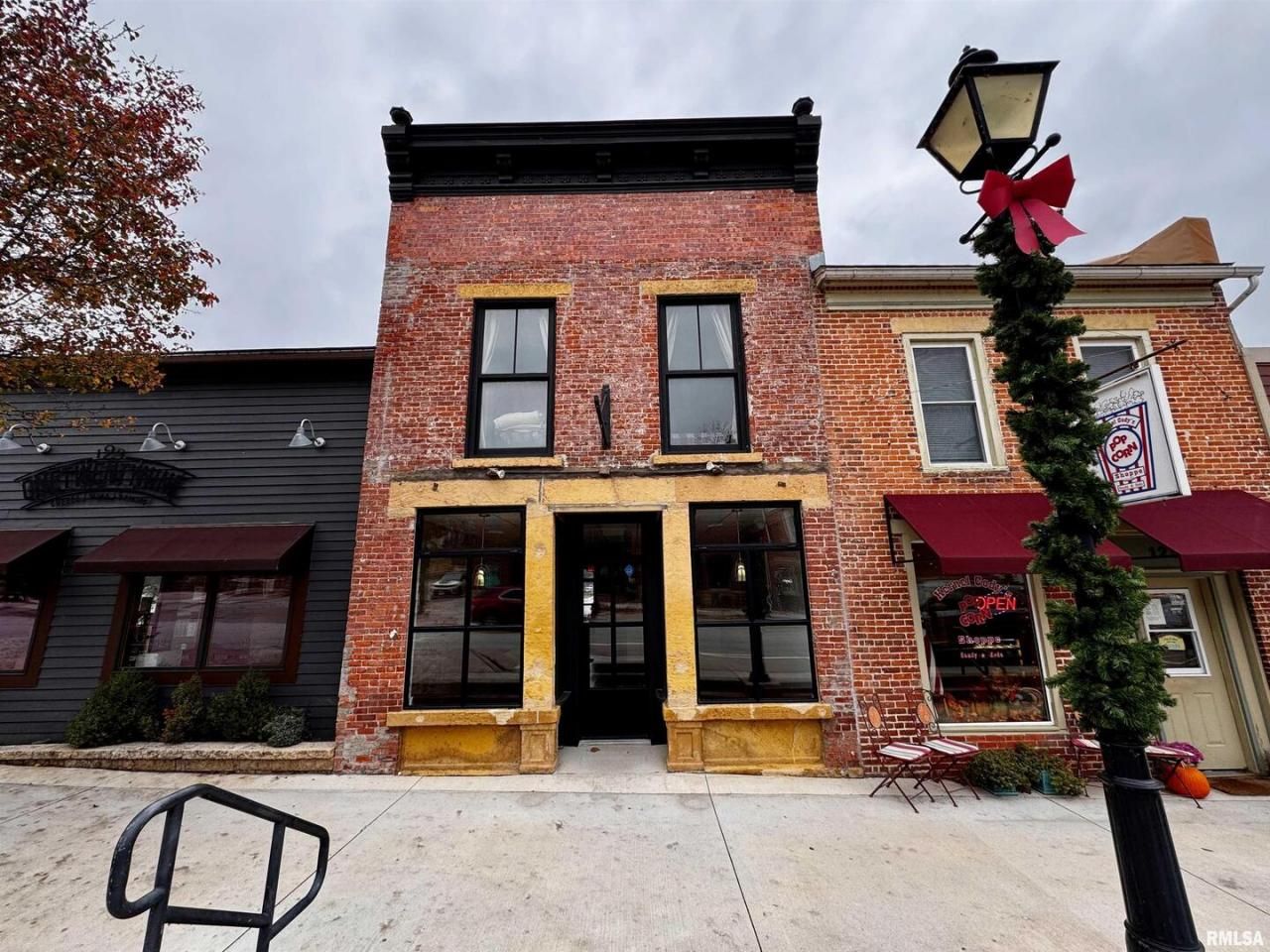 This is the investment you've been waiting for! This downtown LeClaire historic, river view building has been brought back with all the modern conveniences for today by Mike Wolfe of American Pickers. Right in the heart of LeClaire's bustling shopping district. The brick and limestone have been restored and tuck pointed. New custom steel, high end windows and doors really add a modern touch to the old wordliness. The main floor commercial space boasts exposed brick walls, original wood floors, updated bath and quartz counter top. Very sharp with many possibilities. Upstairs, you will find a charming, fully furnished, one bedroom Airbnb with all the character you would expect. Make it a long term or short term rental. Exposed brick original walls, original wood floors, and new kitchen with a spectacular river view. The bedroom overlooks historical downtown LeClaire.